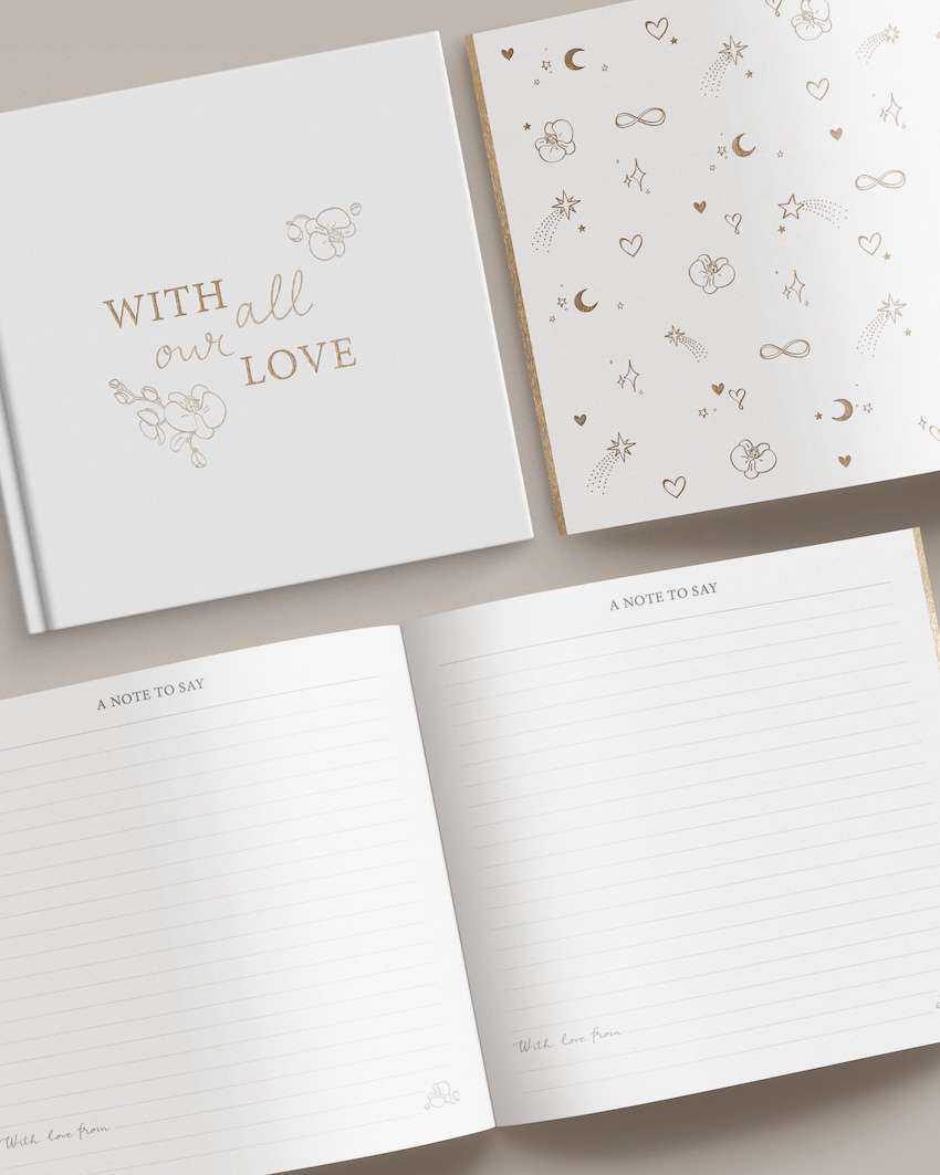 The Personalised Guest Book – With Love is a beautifully considered keepsake, designed to preserve heartfelt messages, memories, and well-wishes from your most meaningful gatherings.